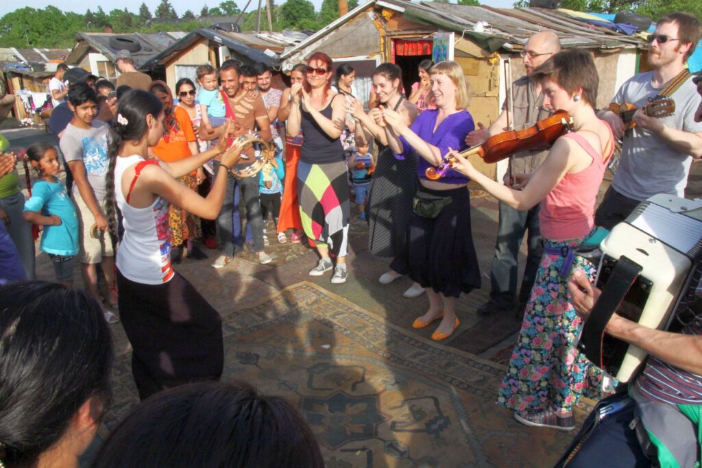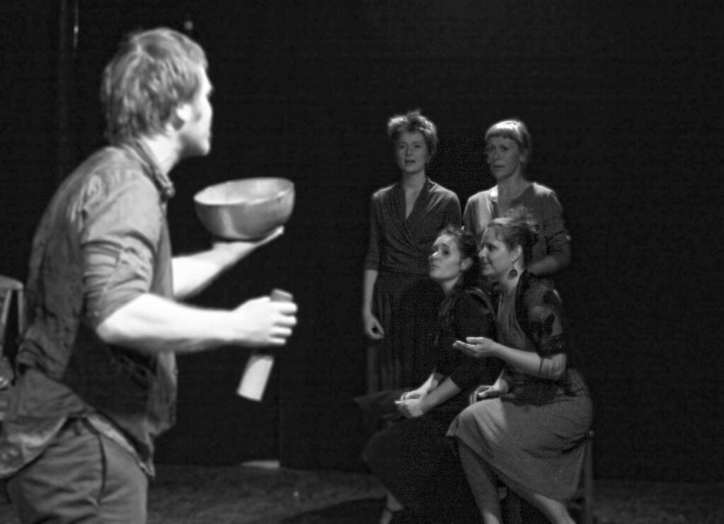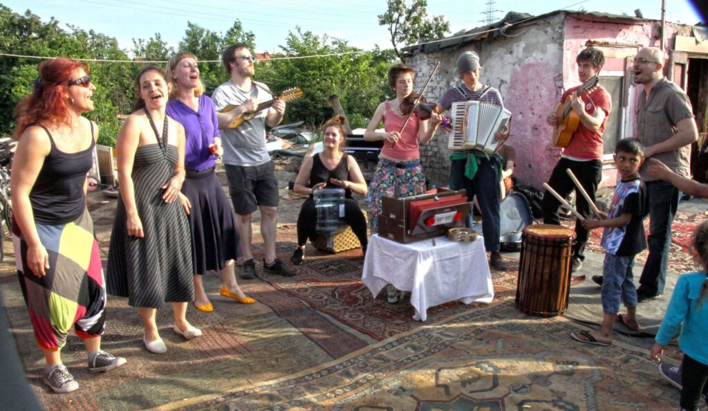 A concert as a journey, a travel, a path from city to city, from meeting to meeting, from song to song. Passing through diverse musical landscapes we aim to build a map of different countries, different cities and different people, drawing from the tradition of polyphonic singing, travelling Roma music and materials gathered by Jubilo Ensemble members in cultural expeditions to various European countries. The harmonies we create in the space will be symbolically and physically expressed by theatrical actions and performative elements, enriching the musical dramaturgy and leading us towards the next step of HIDDEN CITIES – the creation of a performance.